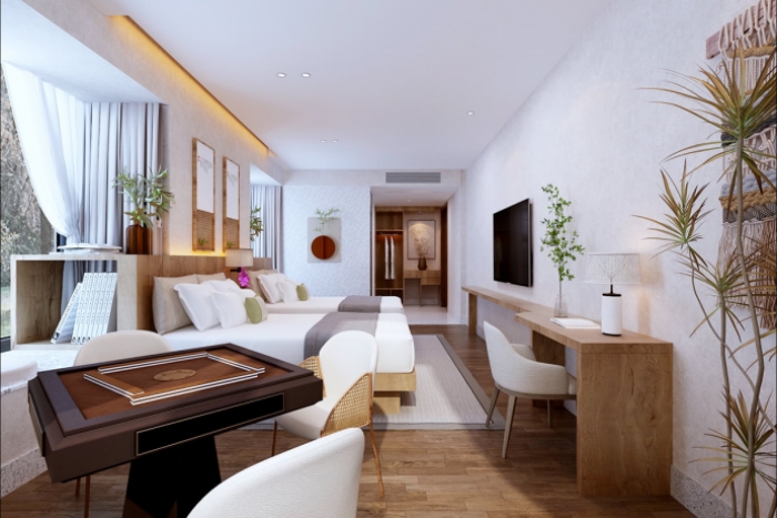 合肥装饰公司>合肥装修公司>办公室装修>厂房装修>展厅装修>办公楼设计装修 > 精品案例 > 民宿/酒店/别墅/住宅 > 超白”客房:现代风格民宿装修设计