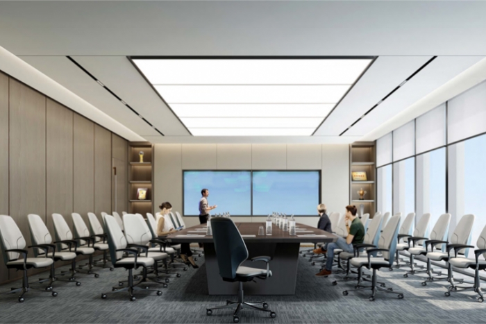 该办公室装修设计案例位于芜湖市,采用现代简约风格装修设计,设计理念为“简单、实用、自然、舒适”。强调功能性和实用性,避免过度华丽的装饰和过多的陈设。现代简约风格的设计不仅仅是减少装饰元素,而是追求更高层次的设计境界,通过简洁的线条和形状,以及合理的色彩和布局,创造出既舒适又具有现代感的空间。