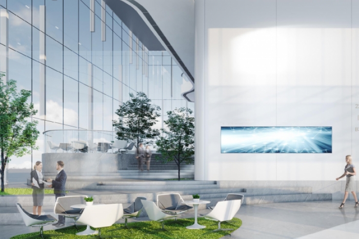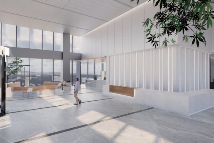该办公楼装修设计中,接待大厅设计尤其重要,首先设计师根据企业需求和空间大小,合理规划空间布局,确保功能区域的设置既美观又实用;选用高品质的装饰材料,如大理石、高档涂料和精致的吊灯等,以提升整体质感;提供舒适的座椅、茶几和咨询台等家具,确保来访者的舒适度和满意度;采用柔和、自然的照明设计,营造舒适的接待环境。同时,设置适...