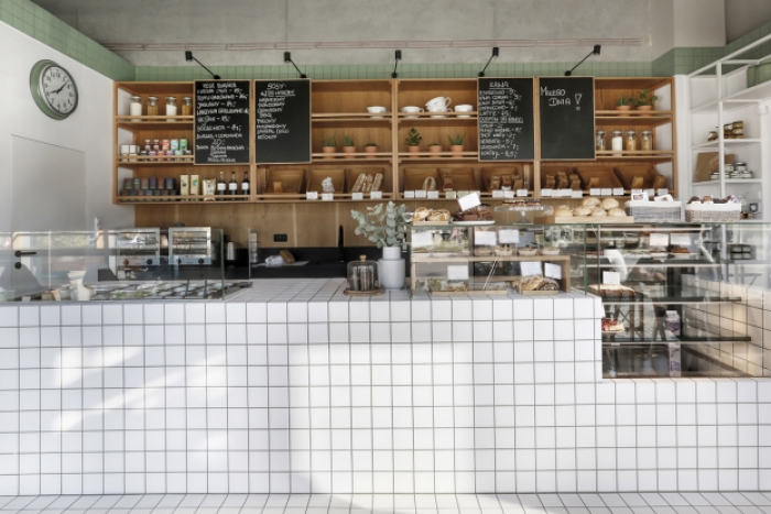 本面包店装修设计项目,以“精致、温馨、舒适”为设计理念,通过合理的色彩搭配、材料选择、空间布局以及灯光和装饰细节的处理,打造出一个充满魅力的面包店。这种设计风格不仅吸引了大量年轻人和家庭的关注,也提升了店铺的品牌形象和市场竞争力。